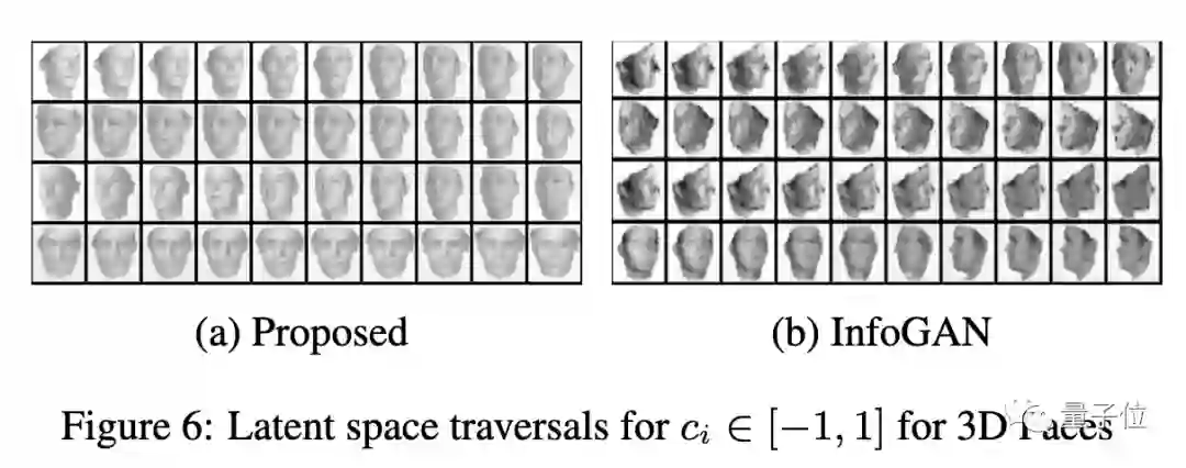 研究人员还在3D Faces数据集上进行了实验。该数据集包含24万个人脸模型,这些人脸模型的旋转度、光线、形状和高度会随机变化。