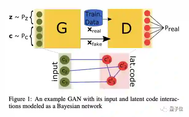 然后,将一组观测变量与判别器潜码的「联合分布」表示为贝叶斯网络的形式。