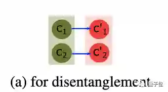 正如图中提取出的三个特征,其中两个引出第三个。而连接红绿两点的线代表了观测变量与潜码之间的因果关系,让观察变量控制生成器输出的显著特征。