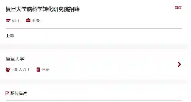 复旦大学脑科学转化研究院招聘全职研究人员