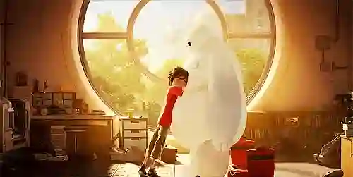 《超能陆战队》主人公Hiro与家庭机器人大白(Baymax)相拥