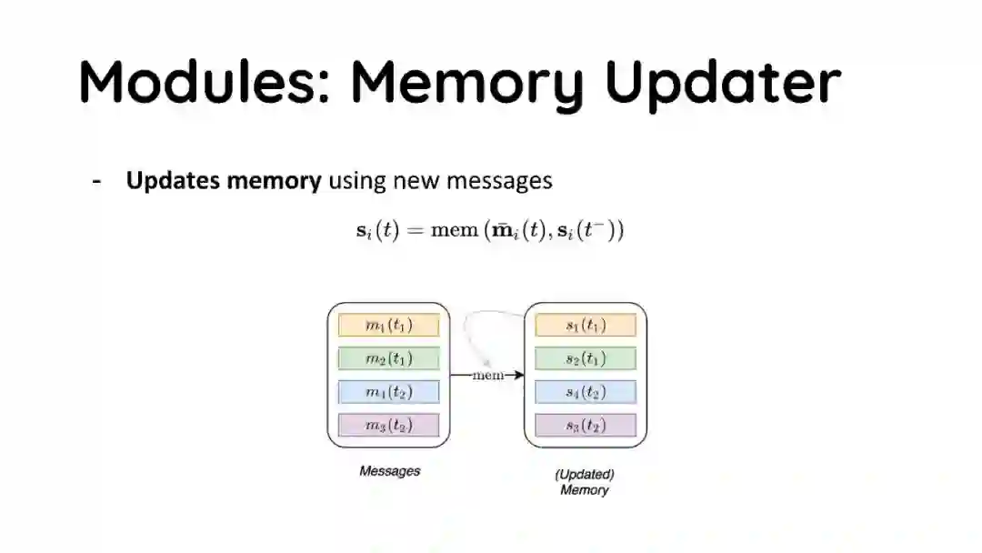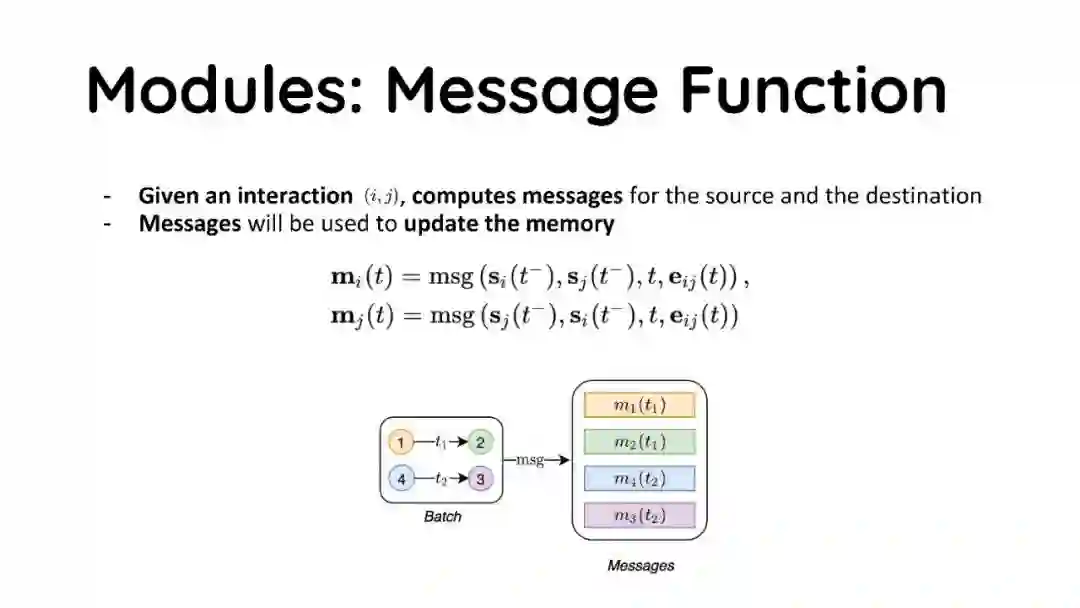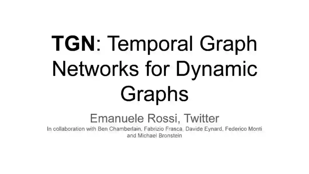 图神经网络(GNNs)最近变得越来越受欢迎,因为它们能够学习复杂的关系系统,这些关系产生于从生物学和粒子物理学到社会网络和推荐系统的广泛问题。尽管在图上进行深度学习的不同模型太多了,但迄今为止,很少有人提出方法来处理呈现某种动态性质的图(例如,随着时间的推移而进化的特征或连通性)。在本文中,作者提出了时序图网络(TGNs),一个通用的,有效的框架,用于深度学习动态图表示为时间事件序列。在内存模块和基于图的操作符中,TGNs能够显著优于以前的方法,同时计算效率也更高。作者进一步表明,以前的几个学习动态图的模型可以转换为TGN框架的具体实例。他们对TGN框架的不同组件进行了详细的消融研究,并设计了最佳配置,在动态图的几个转导和归纳预测任务上实现了最先进的性能。