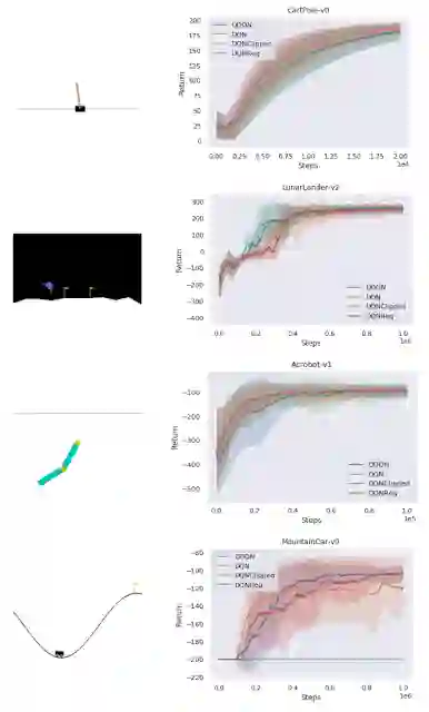 在 RL 中泛化通常指的是经过训练的策略在不同任务之间泛化。然而,在这项工作中,我们关注的是算法泛化性能,换言之,一个算法在一组环境中的表现情况。在一组经典控制环境下,习得算法在密集奖励任务 (CartPole、Acrobot、LunarLander) 中的性能与基线持平,在稀疏奖励任务 (MountainCar) 中,其性能优于 DQN。