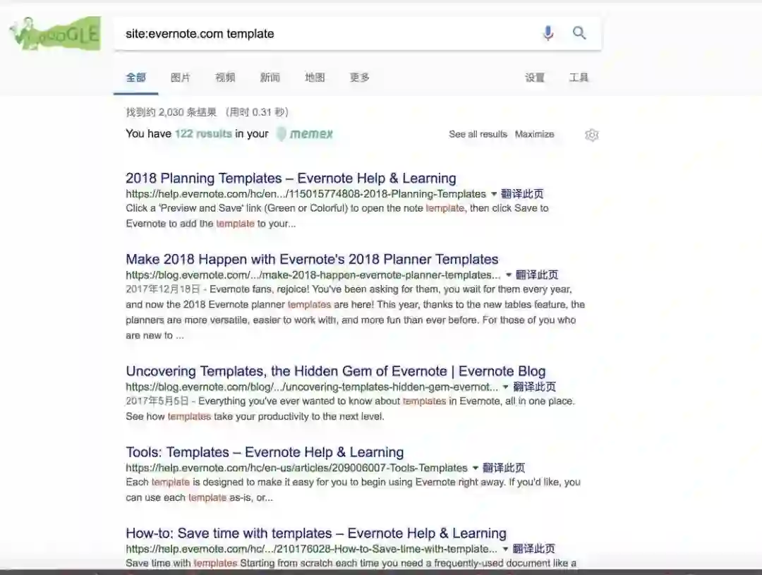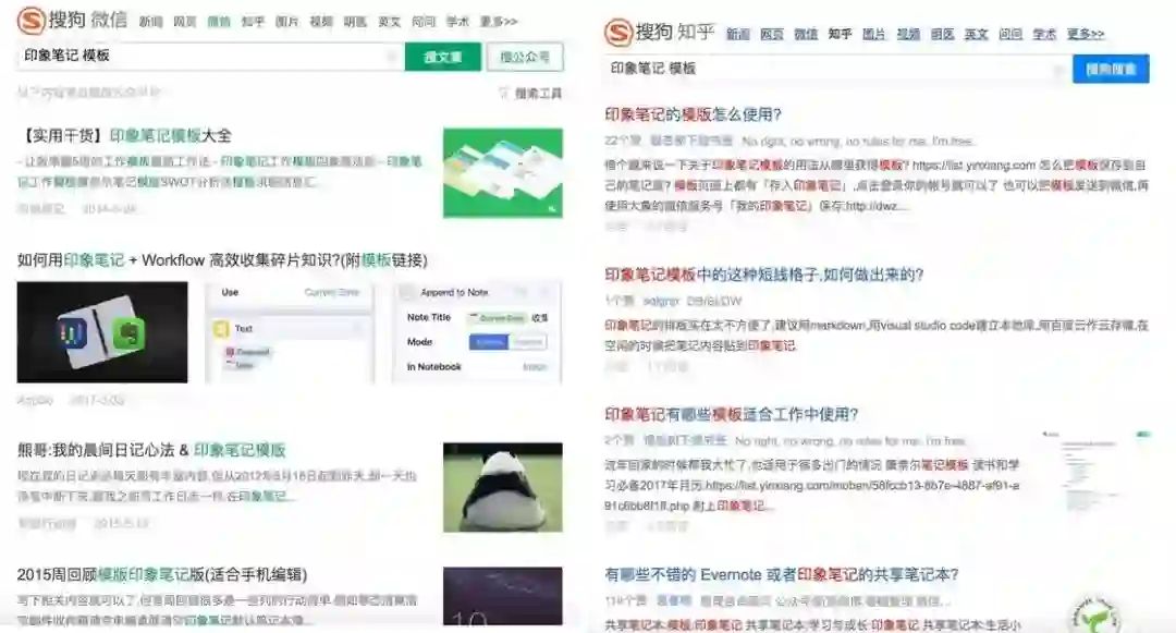 另一方面,我们前面提到要学会更多挖掘官方的优质资源,因此建议大家试一下搜索语法 site,在搜索引擎中输入类似 site:evernote.com 模板、site:evernote.com template、site:yinxiang.com 模板