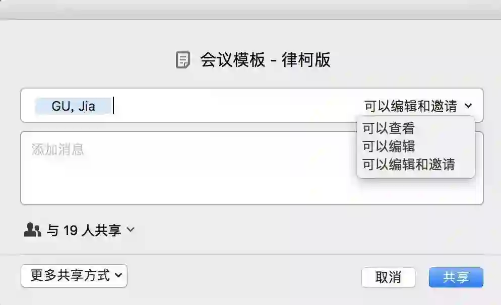 如果是团队内部分享或者是知道对方的印象笔记邮箱账号,那么直接将模板笔记通过「共享笔记」的方式即可,需要注意的是除非双方都需要承担后期维护职责,否则最好将权限设置为只读。