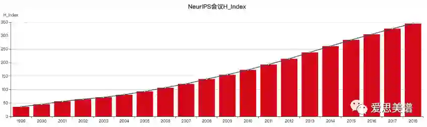 最后,Acemap对NeuIPS近年H-Index、Top30论文的平均引用量、所有论文的平均引用量进行了统计。会议H-index变化如下: