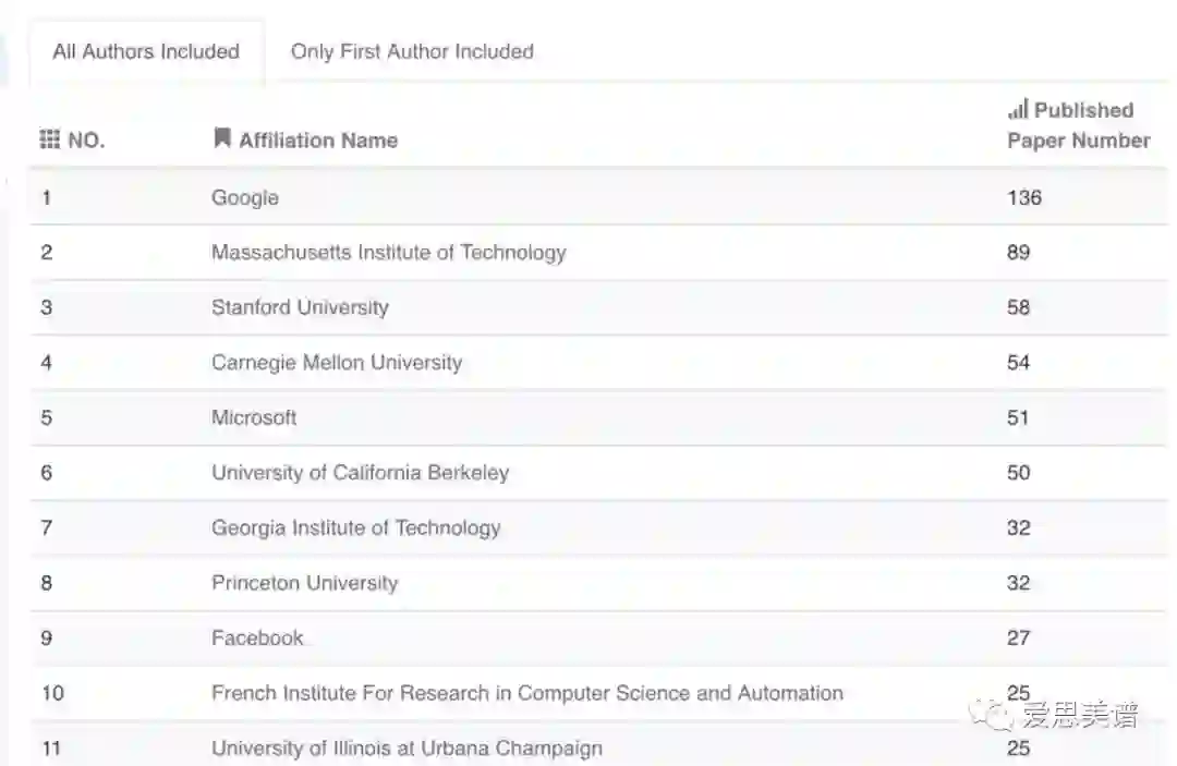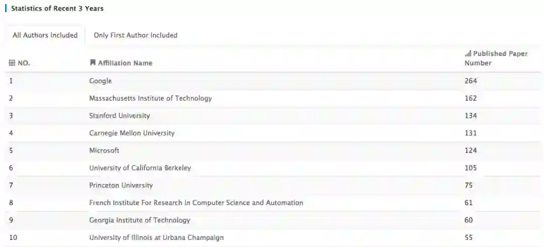 同时,我们也看到前10名中几乎都是美国机构,可见美国在该领域的绝对领先地位。