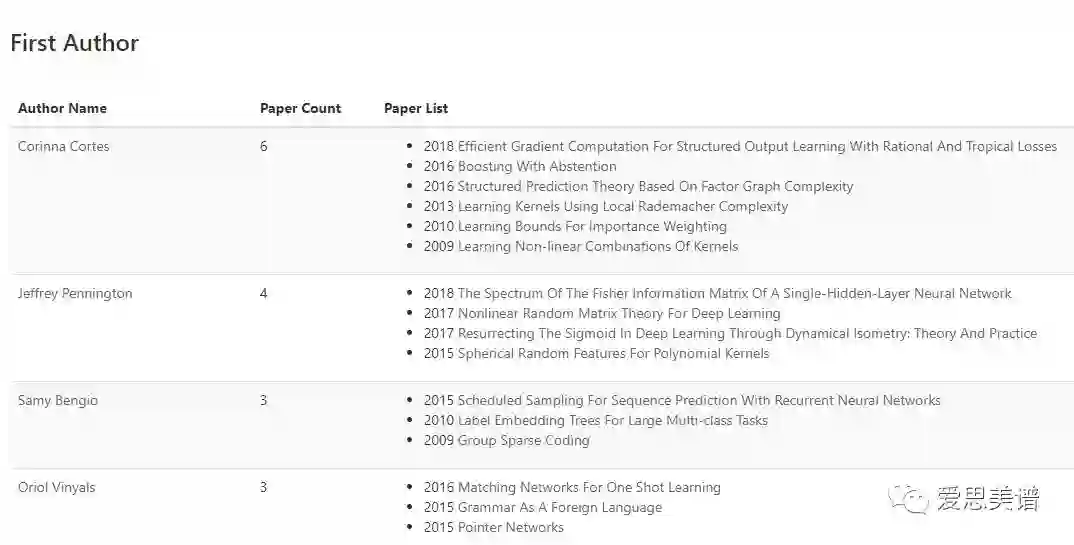 上图可以看到,谷歌公司以第一作者身份发表论文数最多的几个作者是: