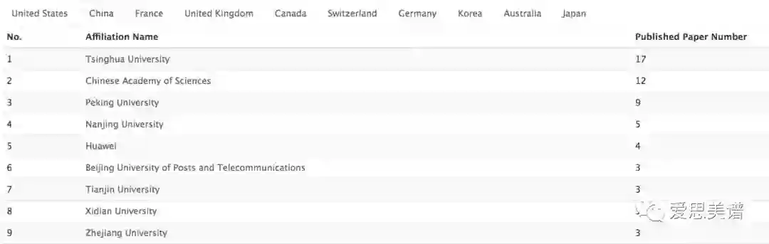 今年会议发表论文的前10名中几乎都是美国机构,可见美国在该领域的绝对领先地位;