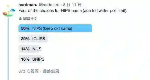 “NIPS”因为带有性暗示,已经在今年引起了许多争议,几次公众呼吁改名之后,NIPS 组委会在今年 4 月份宣布,他们正在考虑改名,并很快就此事向社区征询意见。