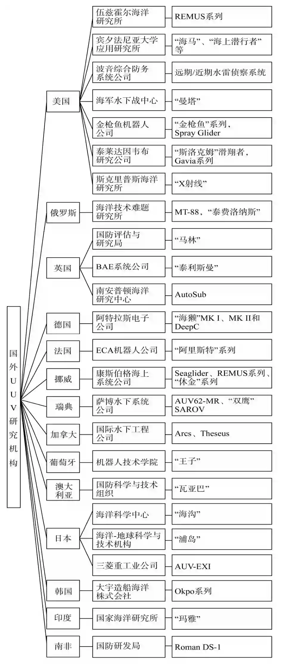 据不完全统计,目前国外主要有十多个国家20多家科研机构在从事UUV的研究开发(见图2),来源主要有以下几方面。