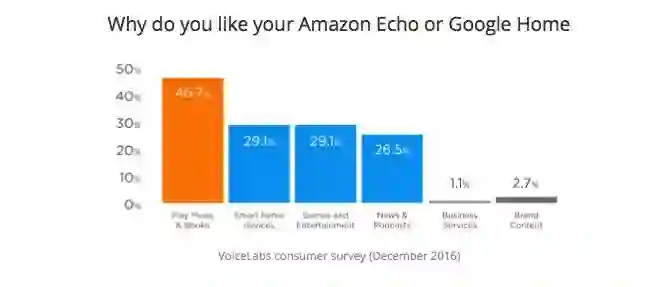 以echo为例,其目前已支持超过7000款应用,服务覆盖新闻资讯、游戏、家居、天气、教育等众多领域,但用户使用场景却主要集中在播报、家居控制、游戏娱乐三方面,三分之二的应用陷于沉寂。