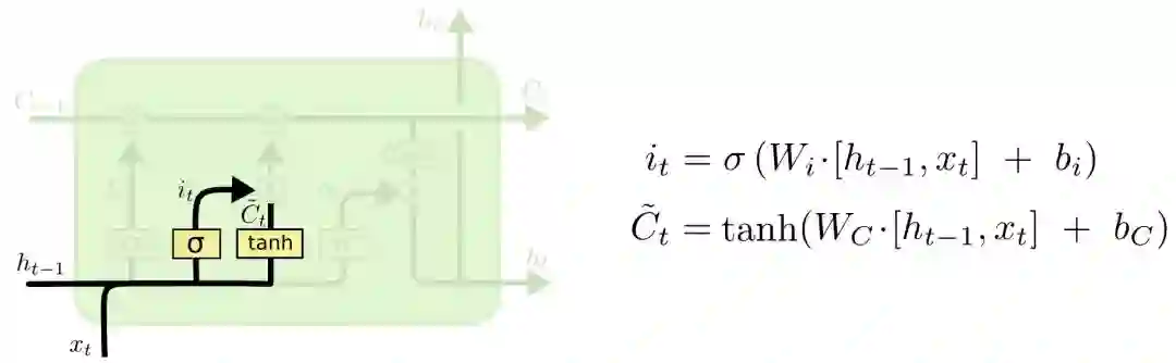 ,其中遗忘,记忆与输出由通过上个时刻的隐层状态