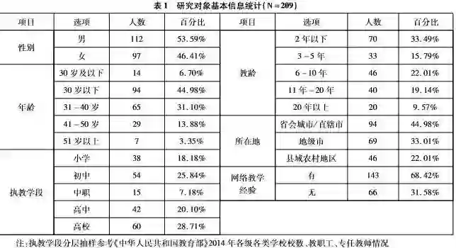 狭义的教师定义包括不同学段的教师:幼儿园、小学、初中、高中教师,中等职业学校教师、中等职业学校实习指导教师、高等学校教师。限于网络教学的应用范围,本研究的研究对象设定为小学、初中、高中教师,中等职业学校教师、高等学校教师。
