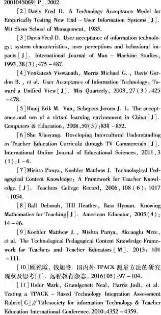 国外关于TPACK理论的研究已比较丰富,但国内对于网络环境下TPACK的研究仍处于起步阶段,且关注点多集中在教师传统教学环境下的TPACK水平的测量、教师TPACK能力培养与教师TPACK水平发展方面,对于TPACK影响因素,尤其是网络教学接受度对TPACK水平的影响还少有涉及,相关理论研究成果、实证研究成果较少。