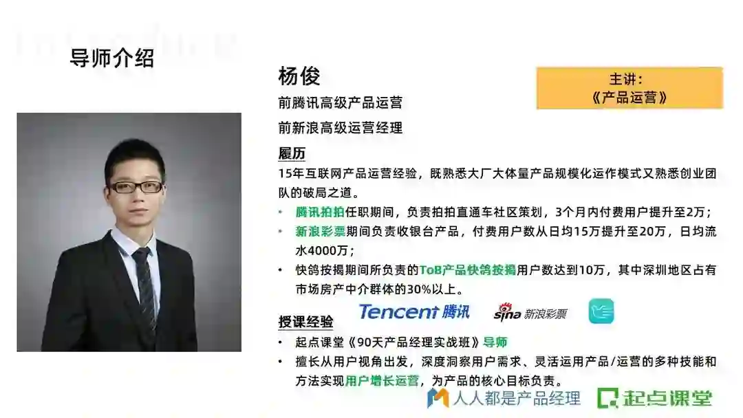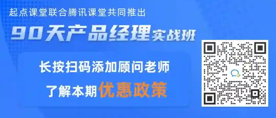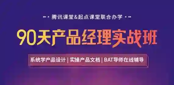 《90天产品经理实战班》是由腾讯课堂&起点课堂联合打造的课程,经过人人都是产品经理社区10年沉淀,课研部门和大厂导师几十次精心打磨,经受过市场多次严苛检验,专为产品人打造的培养系统思维的一门能力进阶课。