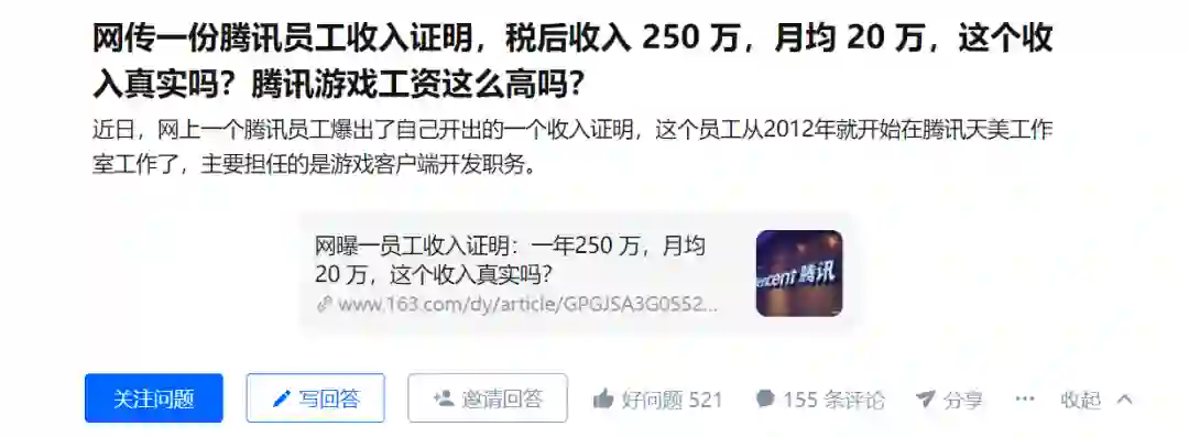 近期知乎上有个帖子在热议:网传一份腾讯员工收入证明,月均20万。