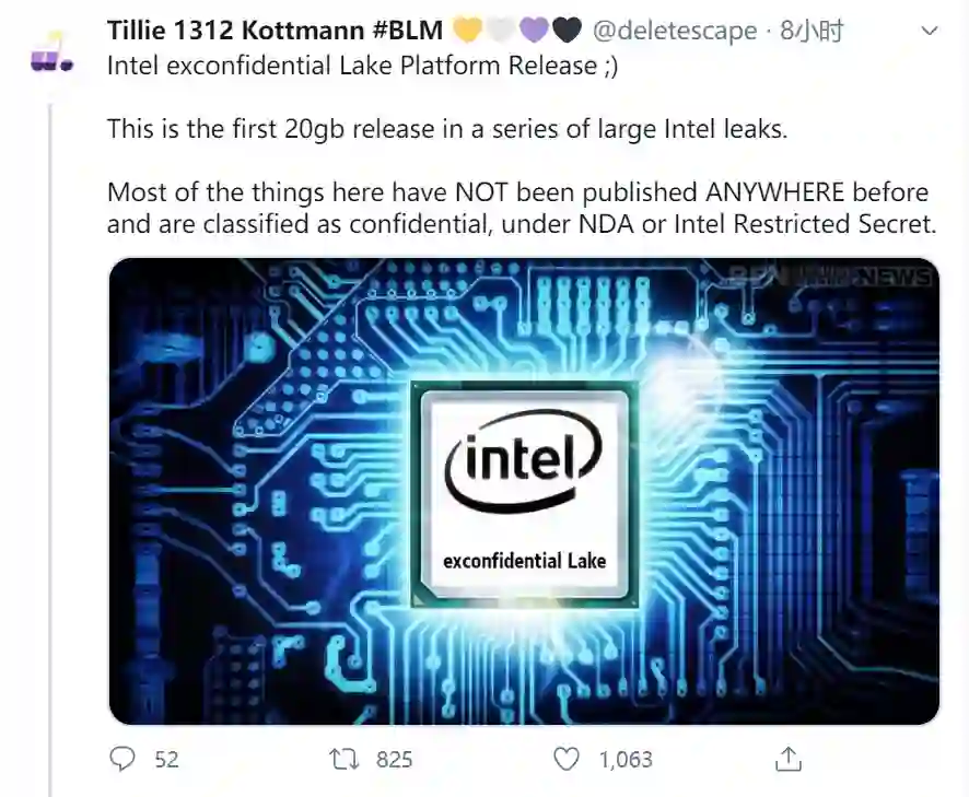 瑞士软件工程师 Tillie Kottmann 在推特上发布消息称,英特尔内部大量机密文件遭到泄露,已知的第一个 20GB 的版本这只是一系列大型数据泄露中的一部分。他随后附上了公开链接,供网友查看下载。