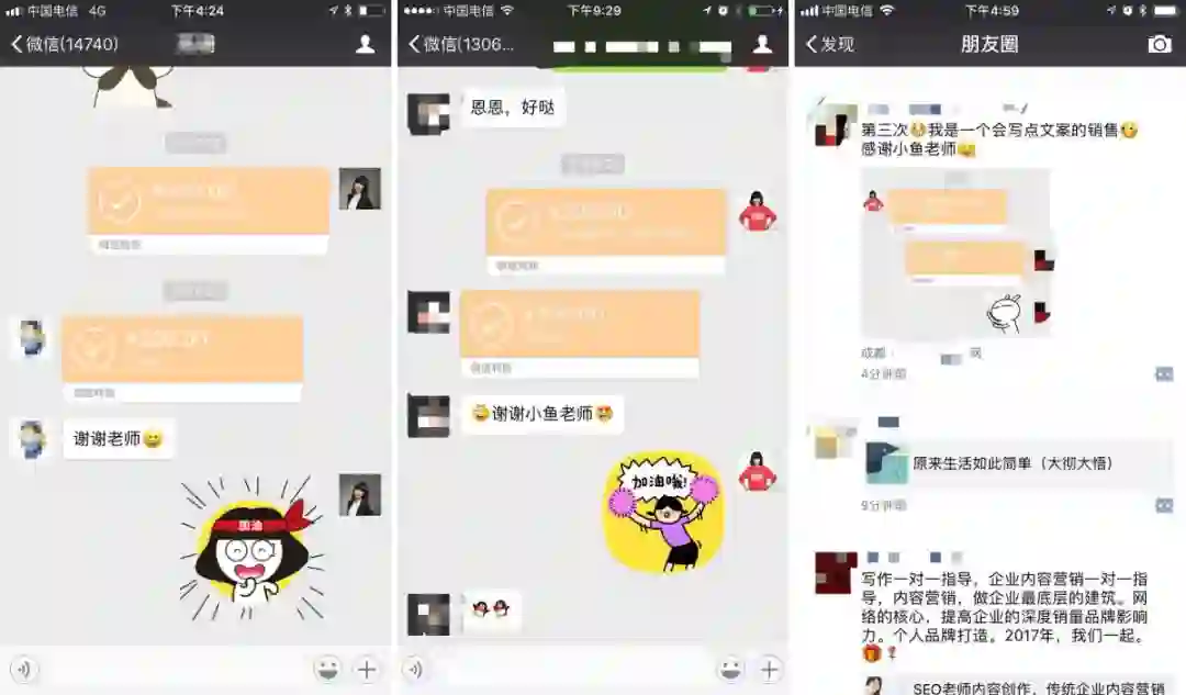 我跟她说:“不会写不要紧,你可以按照我的文案模板,边学习边写。”她跟着我的课,认真学习4个阶段,用文案模板反复练习。不出所料,取得了好的结果