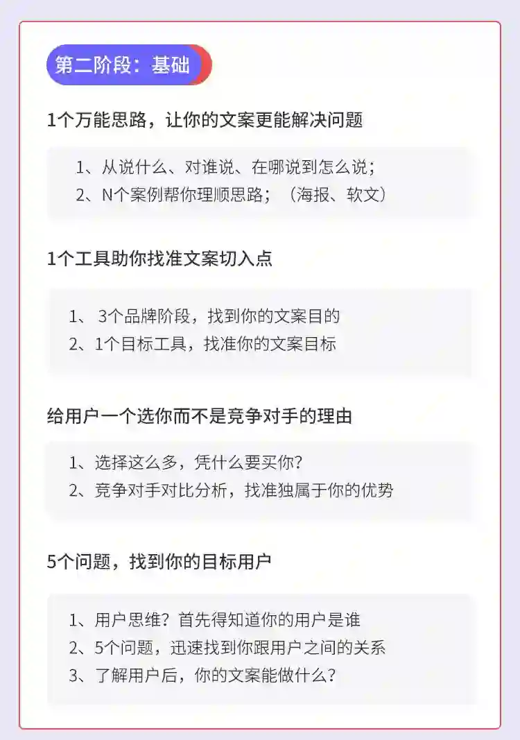措施一:4大阶段文案知识内容,打通文案任督二脉,告别写时没思路,投放没效果