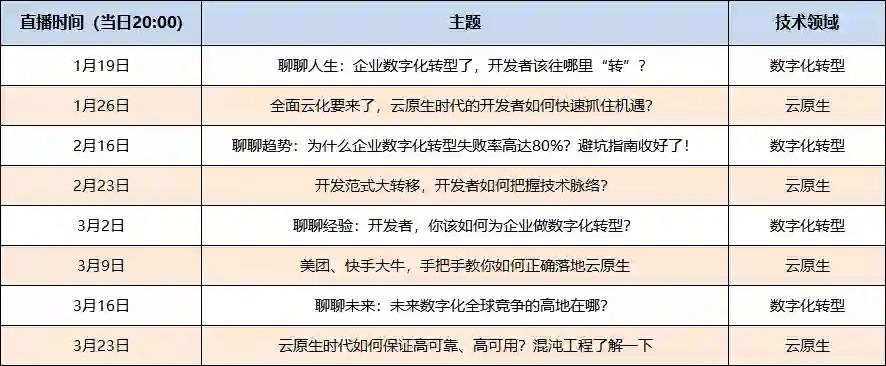 「《新程序员》和TA的朋友们」,将于每周三晚20:00,准时与大家见面。将《新程序员003》中精心打磨的技术内容与观点输出,畅谈技术实践经验和背后的思考,为所有读者朋友投身云原生拥抱数字化答疑解惑。