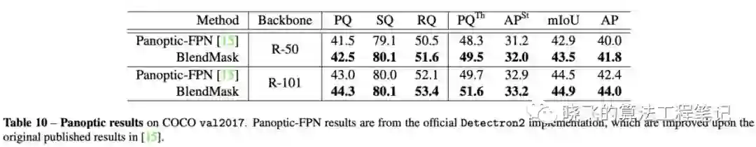 由于bottom模块能同时分割多种物体,BlendMask可直接用于全景分割