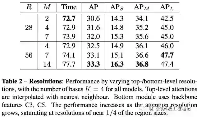 在对top-level attentions进行插值时,双线性比最近邻高0.2AP。