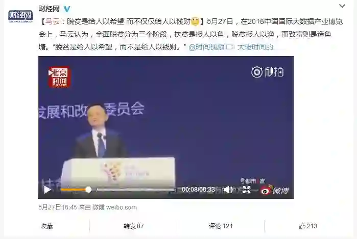 爱刷微博的人一定对马云的演讲有着深刻的印象。隔三差五就能刷到他的众多演讲以及分割后的众多观点。比如今天,挨踢妹就刷了至少三条以上。