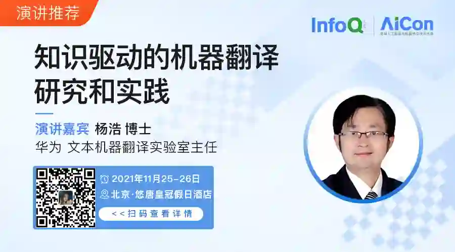 AICon 北京站 NLP 技术和应用专题邀请到华为文本机器翻译实验室主任杨浩博士带来《知识驱动的机器翻译研究和实践》。本议题将会分享华为的离散知识和神经网络模型的融合实践经验,点击阅读原文了解详情。
