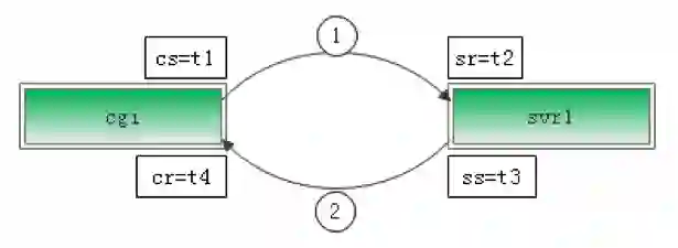 Svr1 的调用 svr2 的耗时 = span2.cr - span2.cs = t6-t3