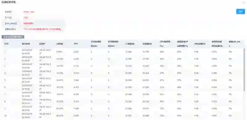 天机阁的压测系统导现网流量进行压测,不需要开发构造请求,仅需要点击个启动按钮,就能自动完成压测,并生成详细的压测报告。报告包括压测结果详情(图16),性能趋势图(图17),压测结果环比(图 18),以及其他的一些性能指标。