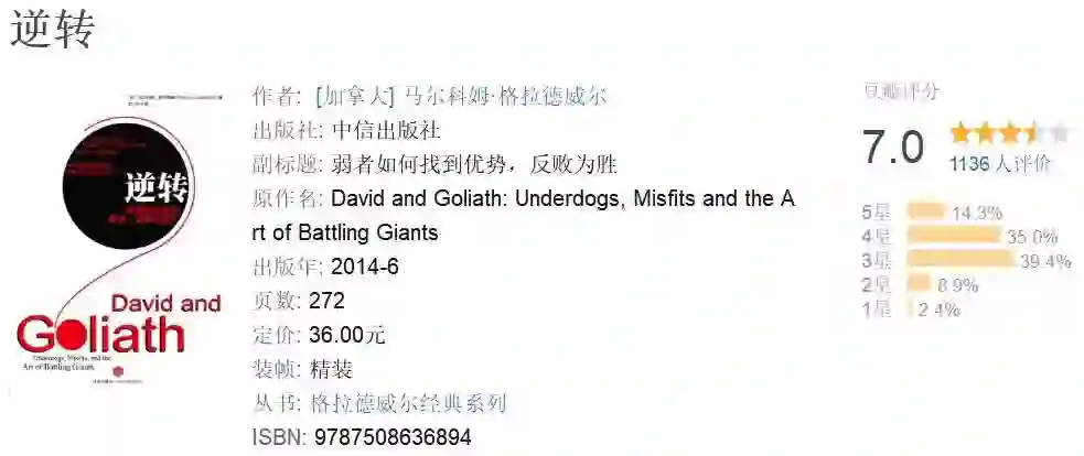 这本书认为,许多我们认为不利的东西实际上是有利的。格拉德威尔的写作风格十分轻松易懂,有很多真实生活中的例子。对于创业者来说是必读书籍!
