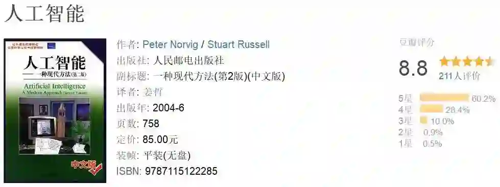 本书通常被称为AIMA,是许多大学课程的一部分。它全面阐述了人工智能领域的核心内容,并深入介绍了各个主要的研究方向,是一本难得的综合性教材。
