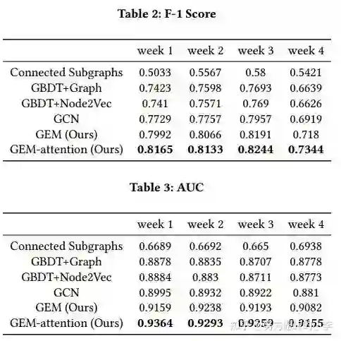 本文的目的是检测支付宝的异常用户。文中针对支付宝用户的“设备聚集性”和“活动聚集性”特征,在传统GCN的基础上进行改进提出GEM模型:考虑不同节点类型构建异构图,利用聚合函数结合邻居节点信息,此外还引入了注意力机制进行建模。对比其他模型取得了较好的效果