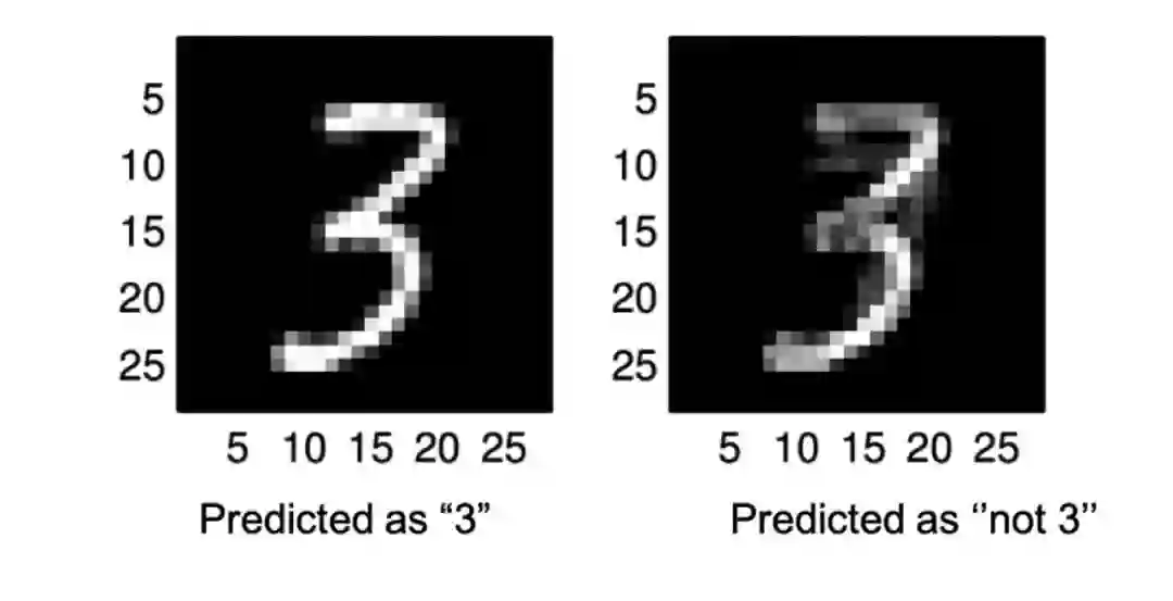 对于MNIST数据集上训练良好的DNN图像分类器,几乎所有的数字样本都可以在原始图像上添加一个不易察觉的扰动。