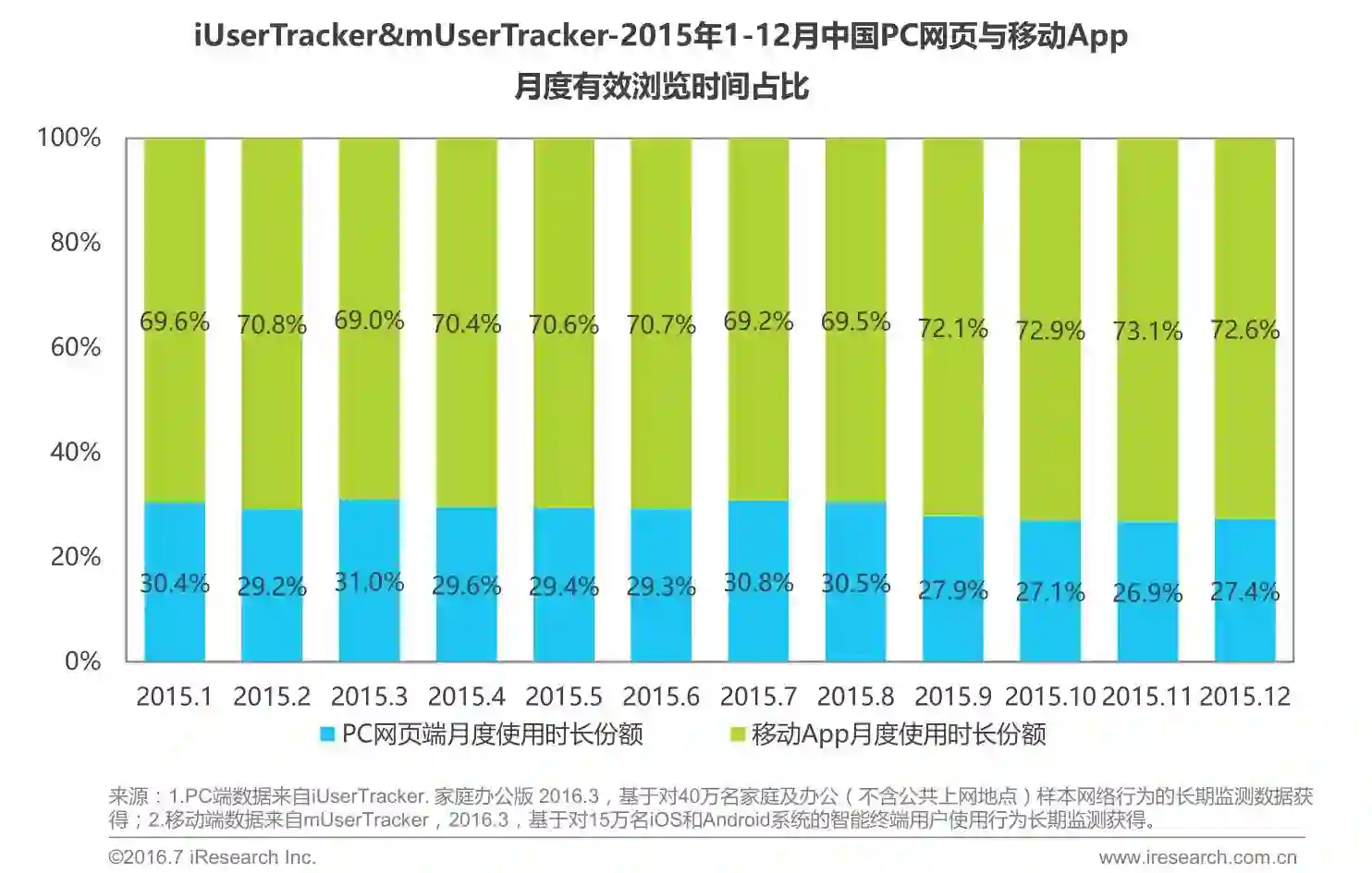 根据艾瑞网民行为监测系统iUserTracker以及移动网民行为监测系统mUserTracker的监测数据显示,移动端App月度有效浏览时间超过PC端网页使用时长的2倍。