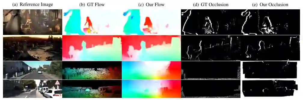 如表1所示,我们在所有评估指标下的所有数据集上实现了无监督和监督光流学习的最新结果。图4所示为Sintel和KITTI的样本结果。
