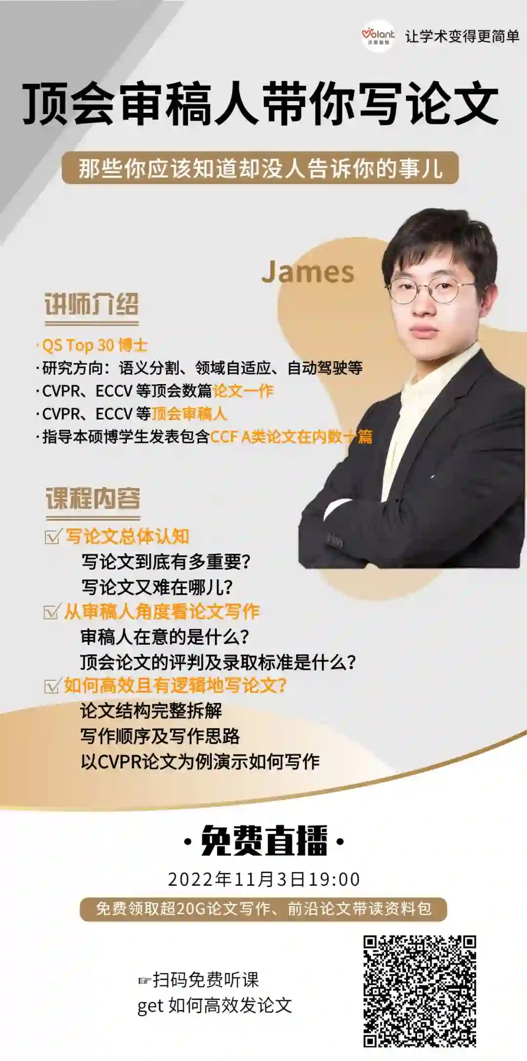 因此,11月3日,我们邀请了顶会审稿人James老师,来和大家聊一聊什么才是写论文的正确姿势~梳理审稿人评判论文标准。帮助大家梳理如何有逻辑、高效的写出一篇高水平论文。