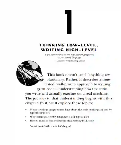 Randall Hyde撰写的具有里程碑意义的“写好代码”系列的第二卷,“低层次思考,高层次写作”,涵盖了高级编程语言(如Swift和Java),以及64位CPUsARM、Java虚拟机和微软公共运行时上的代码生成。