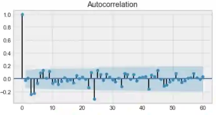 然后,我们添加移动平均模型MA(q)。这需要一个参数q,它代表最大滞后,此后其他滞后在自相关图上不显着。