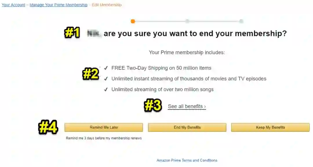 如果我去亚马逊的网站,试图取消我的会员资格,这是我最后一步的页面: