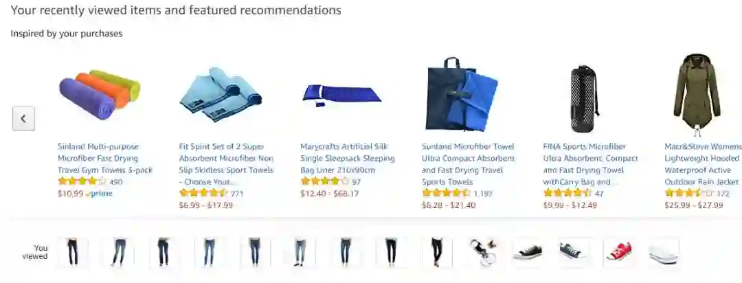 亚马逊使用他们的评论登录页面作为另一个交叉销售其他产品的机会(就像亚马逊通过电子邮件把流量送到的所有网页一样)。在你浏览完你的产品后,在评论登陆页面的底部,你会看到一个「可能需要的产品」和「你浏览了」的部分: