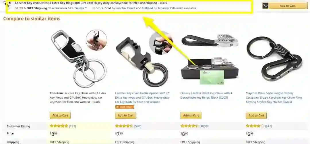例如,这里有三个完全无关的产品,在谷歌输入关键词后,亚马逊的广告会展示出如下样式: