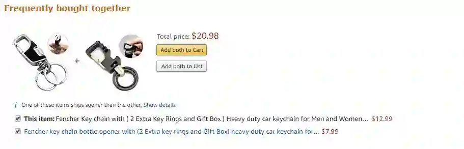 正如我们在亚马逊产品页面分析(技巧 4)中提到的,只要有可能,亚马逊就会用追加销售和交叉销售来做营销。比如这个订单详情页中他们通过显示以下模块来完成: