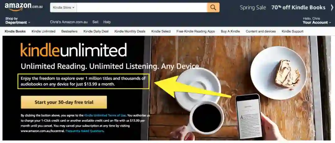 其中一个例子就是他们的 Kindle Unlimited 电子书订阅服务。订阅者可以按照 13.99 美元/月的价格在 Kindle 商店中获得超过百万的电子内容。