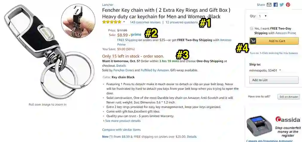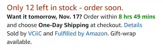 使用亚马逊产品页面中的 5 个转化元素来推动访问者立即购买。亚马逊使用了社群证明、折扣、急迫性和稀缺性、一键购买按钮、追加销售和交叉销售,以及页面上的智能栏。