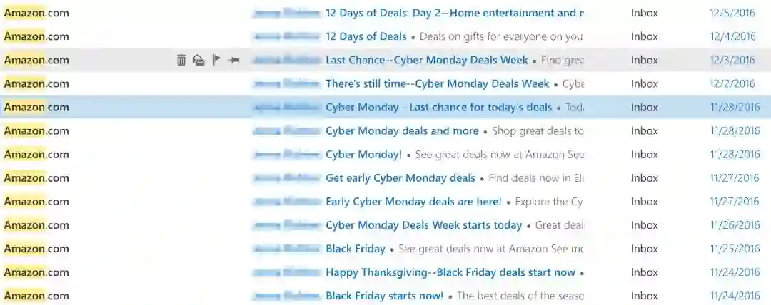 收到时间:亚马逊在推广他们的限时销售活动时相当没有底线。所以,你的收件箱可能会像这样,引导去向一场盛大的销售活动: