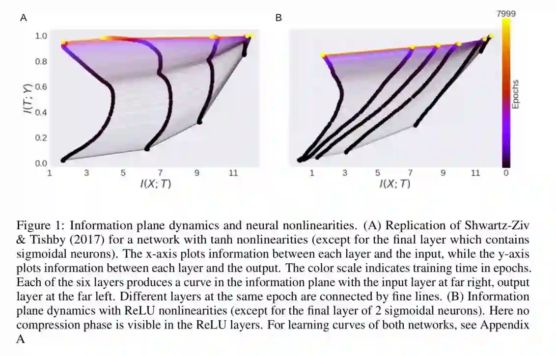 简单来说,该论文发现 Schwartz-Viz 和 Tishby 论文中的结果无法很好地泛化到其他网络架构:训练期间的两个阶段依赖于激活函数的选择;无法证明压缩与泛化之间存在因果关系;当压缩确实发生时,它不一定依赖于来自随机梯度下降(SGD)的随机性。