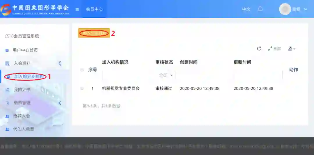 1、在学会系统中选择加入机器视觉专委会: