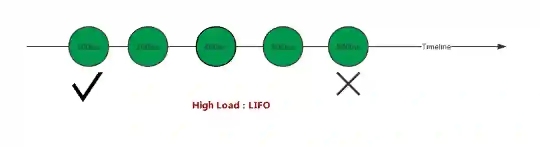 因此在微服务下,当系统处于高负载时,就要实行后进先出的策略,即需要主动丢弃排队很久的请求,让那些后进来的请求优先通过,以吸收突增流量作为缓冲,从而弥补CoDel队列之前算法里的缓冲问题。